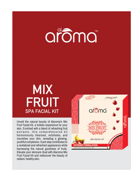 Al Aroma Mix Fruit Spa Facial Kit (290 g) – A rejuvenating skincare solution enriched with the goodness of natural fruit extracts. Brightens, refreshes, and nourishes your skin for a healthy, glowing complexion.