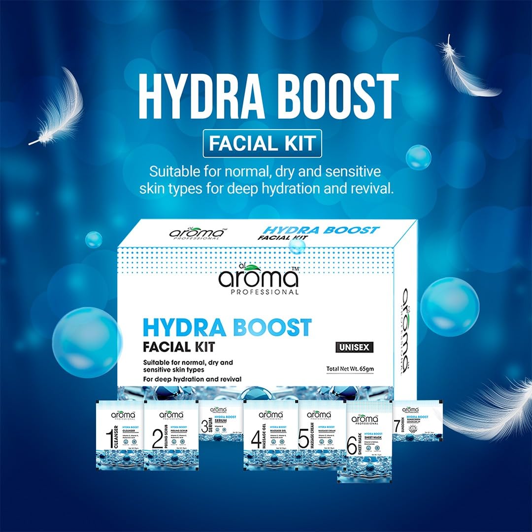 Alaroma Hydra Boost Facial Kit deeply hydrates, nourishes, and revitalizes skin with the power of Hyaluronic Acid and Natural Extracts, giving you a glowing, refreshed, and radiant complexion.