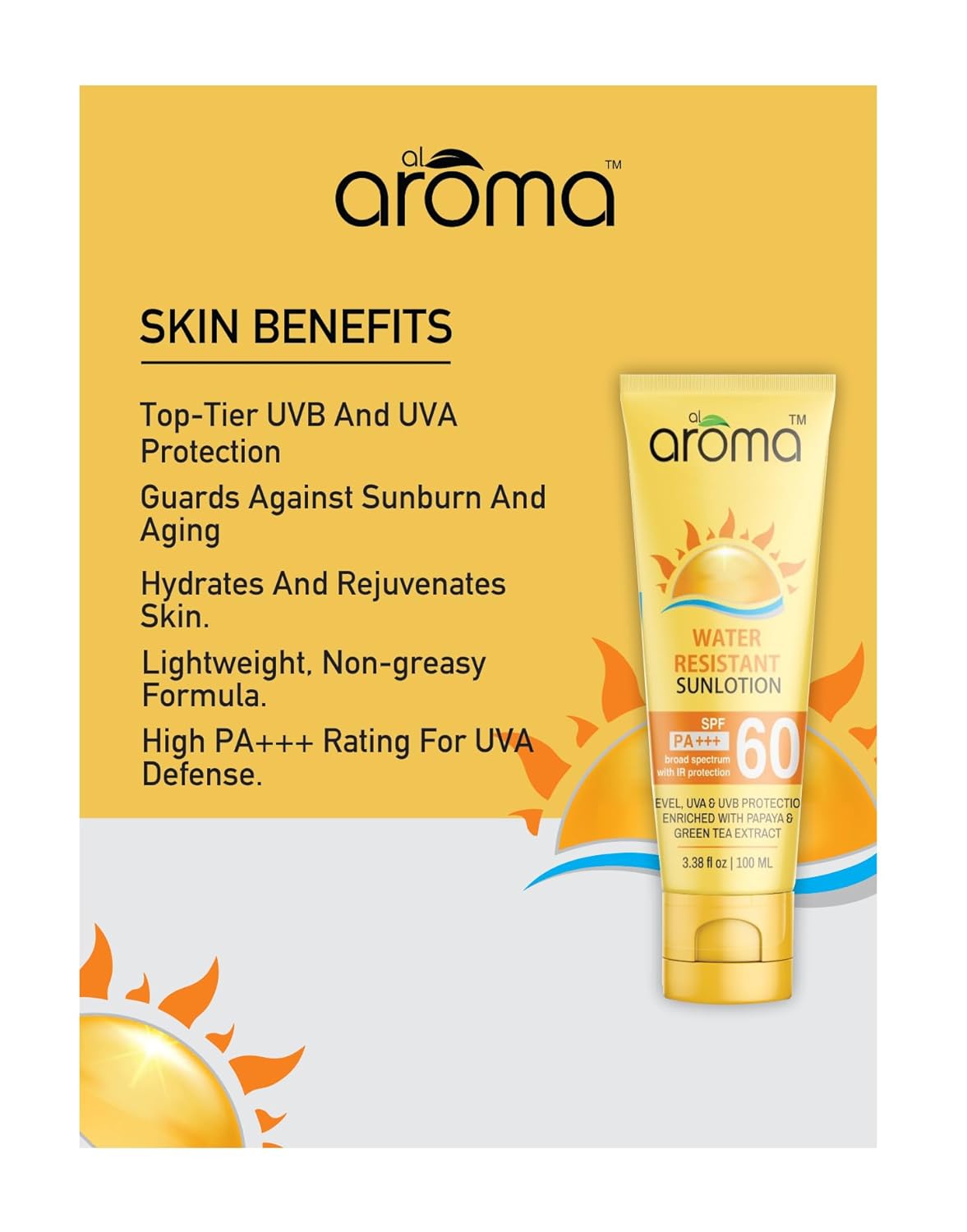The Alaroma Leafs Sunscreen SPF 60 PA+++ is designed to provide advanced sun protection for your skin. With a broad-spectrum formula, it shields against UVA, UVB, and IR (infrared) radiation, preventing sunburn, tanning, and premature skin aging. Its water-resistant property ensures long-lasting defense, even during outdoor activities or sweating.