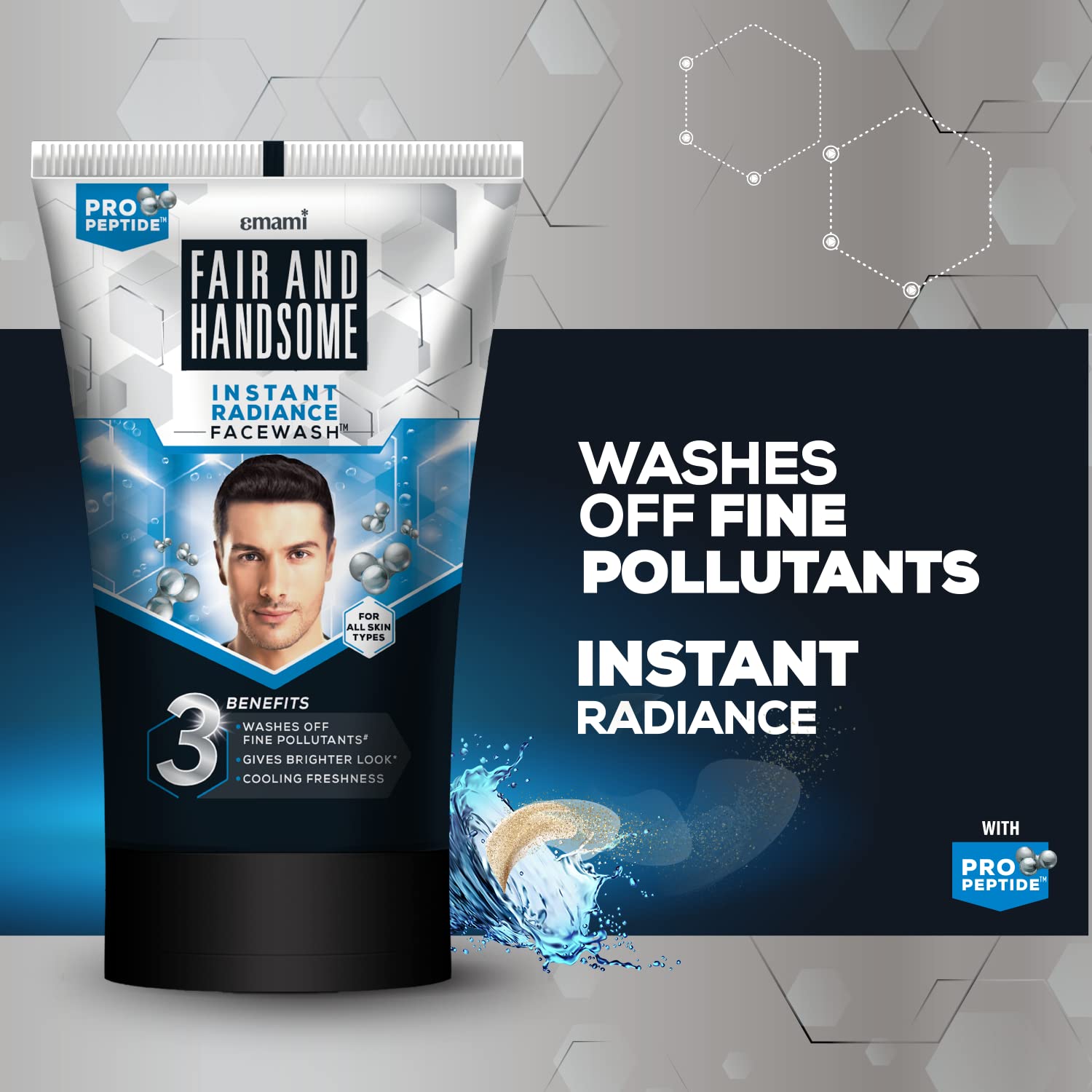Whether you’re getting ready for work, a workout, or an evening out, Fair & Handsome Instant Radiance Facewash ensures you look your best in just a few seconds.