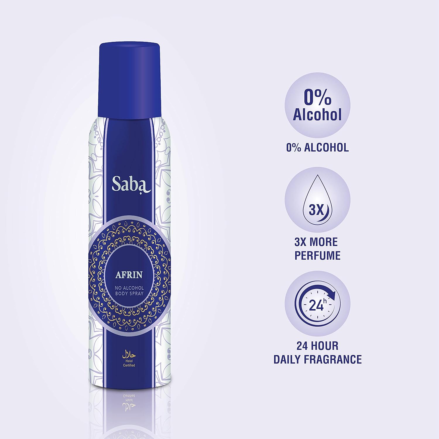 Stay fresh and confident all day with Saba Afrin Halal Non-Alcoholic Deodorant Body Spray, infused with the soothing essence of Gardenica flowers and rose petals.