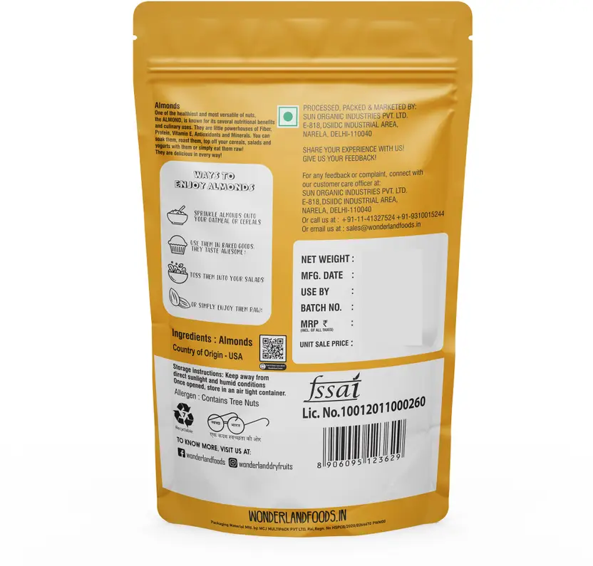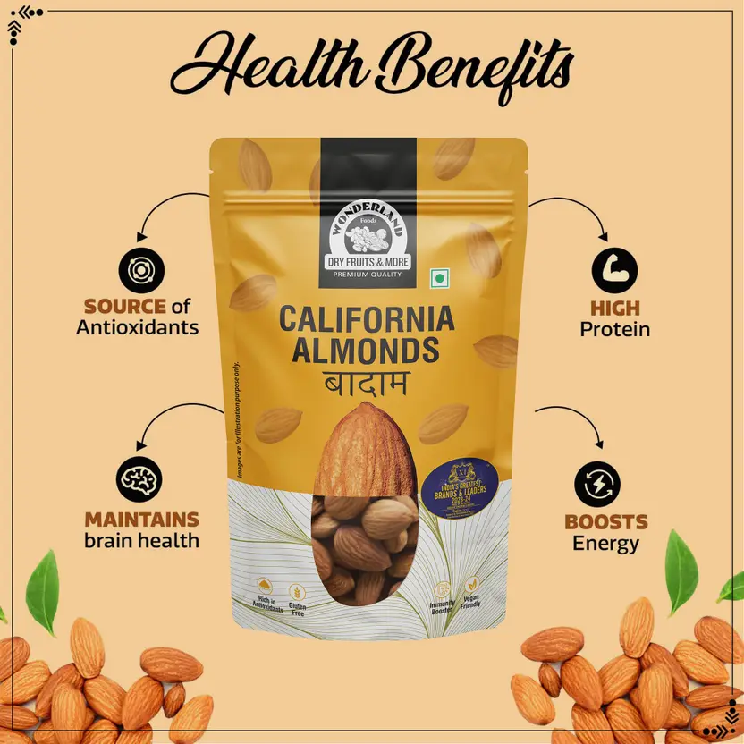 WONDERLAND Almonds are carefully sourced, processed, and packed to maintain the highest quality standards. Every almond delivers premium taste, natural nutrition, and crunch, making it an excellent choice for families, fitness enthusiasts, and health-conscious individuals. Perfect as a gift or for personal consumption, these almonds combine convenience, health, and indulgence in a single pack.