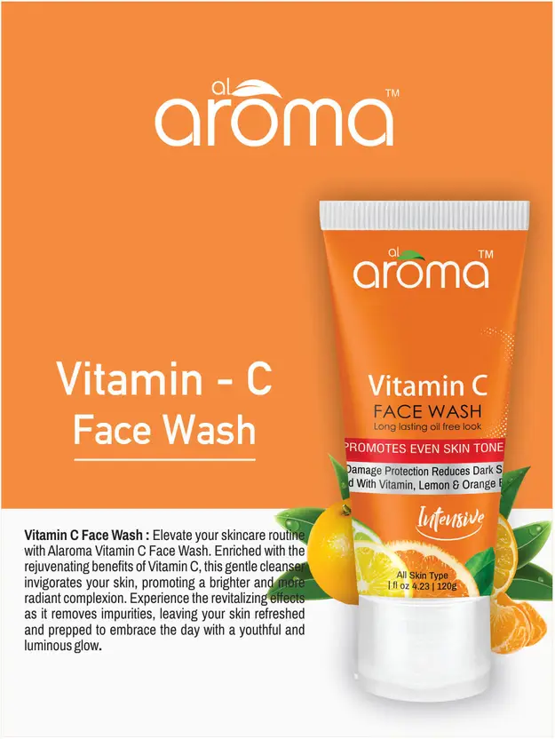Al Aroma Vitamin C Face Wash gently cleanses, brightens, and refreshes your skin with the power of Vitamin C & citrus extracts, leaving it soft, glowing, and energized.