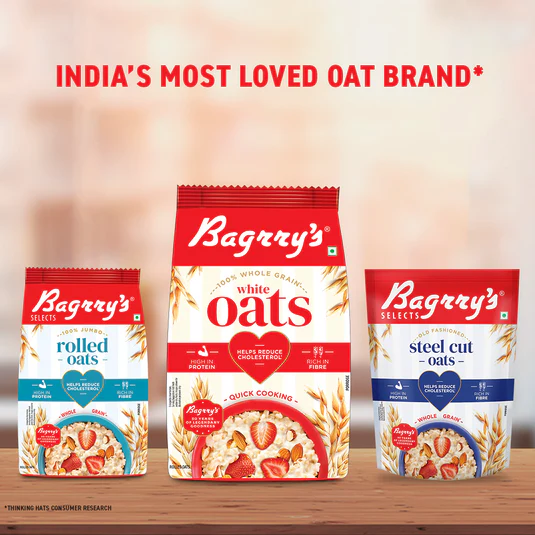 Nutritious, high-protein Bagrry’s White Oats – rich in fibre, supports heart health, lowers cholesterol, and cooks quickly for a wholesome, healthy breakfast or snack.