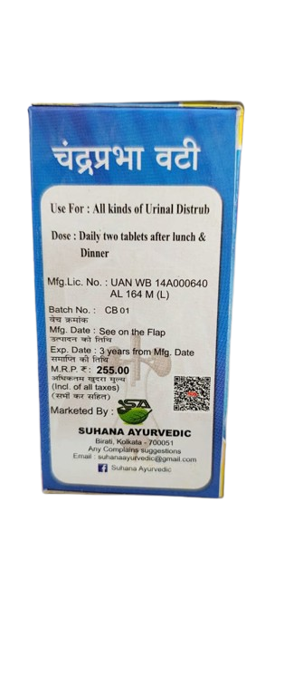 This herbal supplement also strengthens the kidneys, supports proper fluid balance, and promotes relief from discomfort associated with urinary disorders. Safe for regular use, Chandraprova Bati is a holistic solution for urinary and kidney wellness.