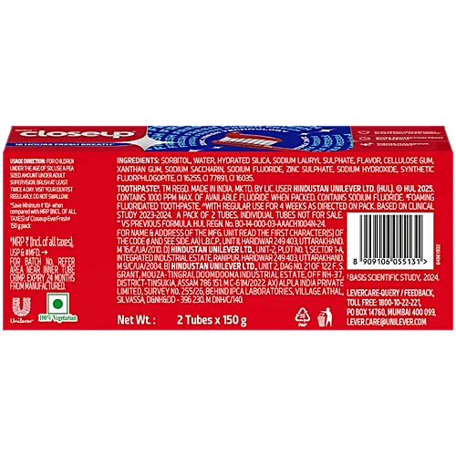 Closeup Everfresh+ Red Hot Triple Fresh Formula Toothpaste (150 g x 2 – Pack of 2)