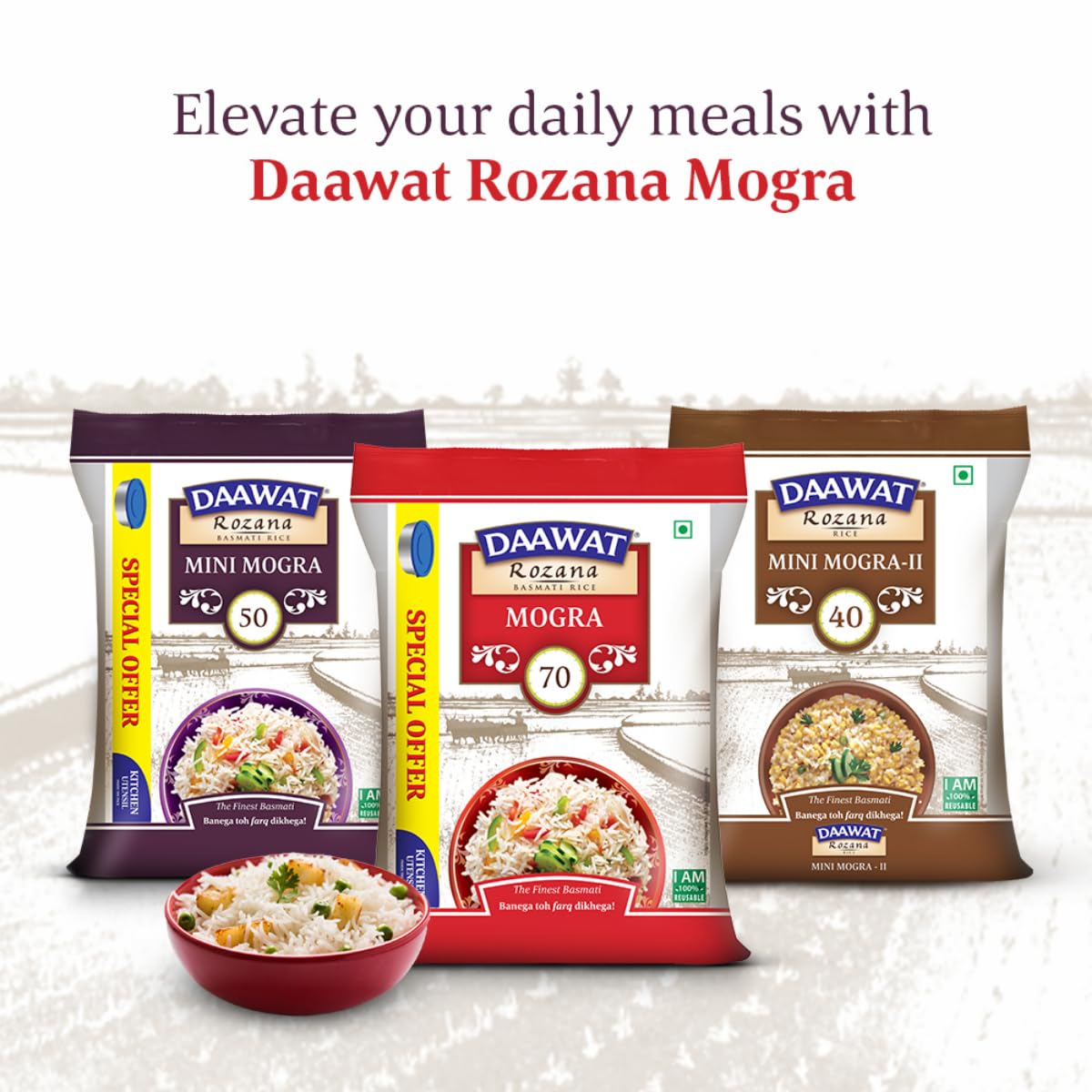 With its delightful fragrance and soft texture, this rice elevates simple dishes into flavorful experiences. Whether it is plain steamed rice with dal, a light pulao, or a delicious biryani, Daawat Rozana Mogra ensures consistent taste and quality in every serving.