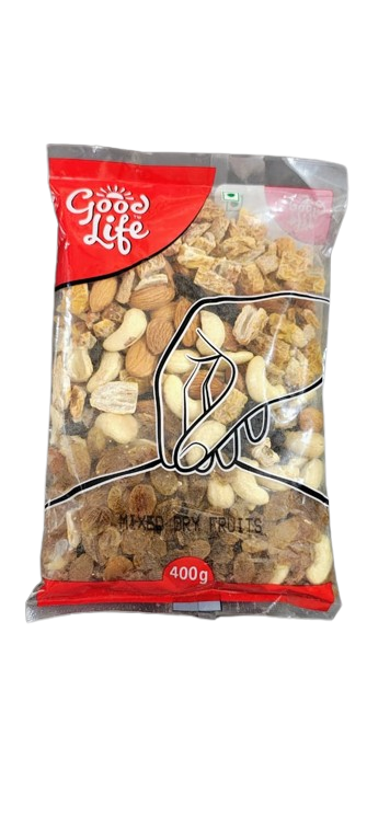 Good Life Mixed Dry Fruits (400g) – a premium blend of almonds, cashews, raisins, and other nutritious dry fruits. Perfect for healthy snacking, gifting, and adding natural energy to your day.