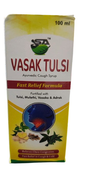 Vasak Tulsi is a powerful Ayurvedic cough syrup enriched with the goodness of Vasaka (Adhatoda vasica) and Tulsi (Holy Basil) — two of nature’s best herbs for respiratory wellness. This herbal blend provides quick relief from cough, cold, sore throat, and congestion. It helps clear mucus, soothes the throat, and supports healthy breathing without causing drowsiness.
